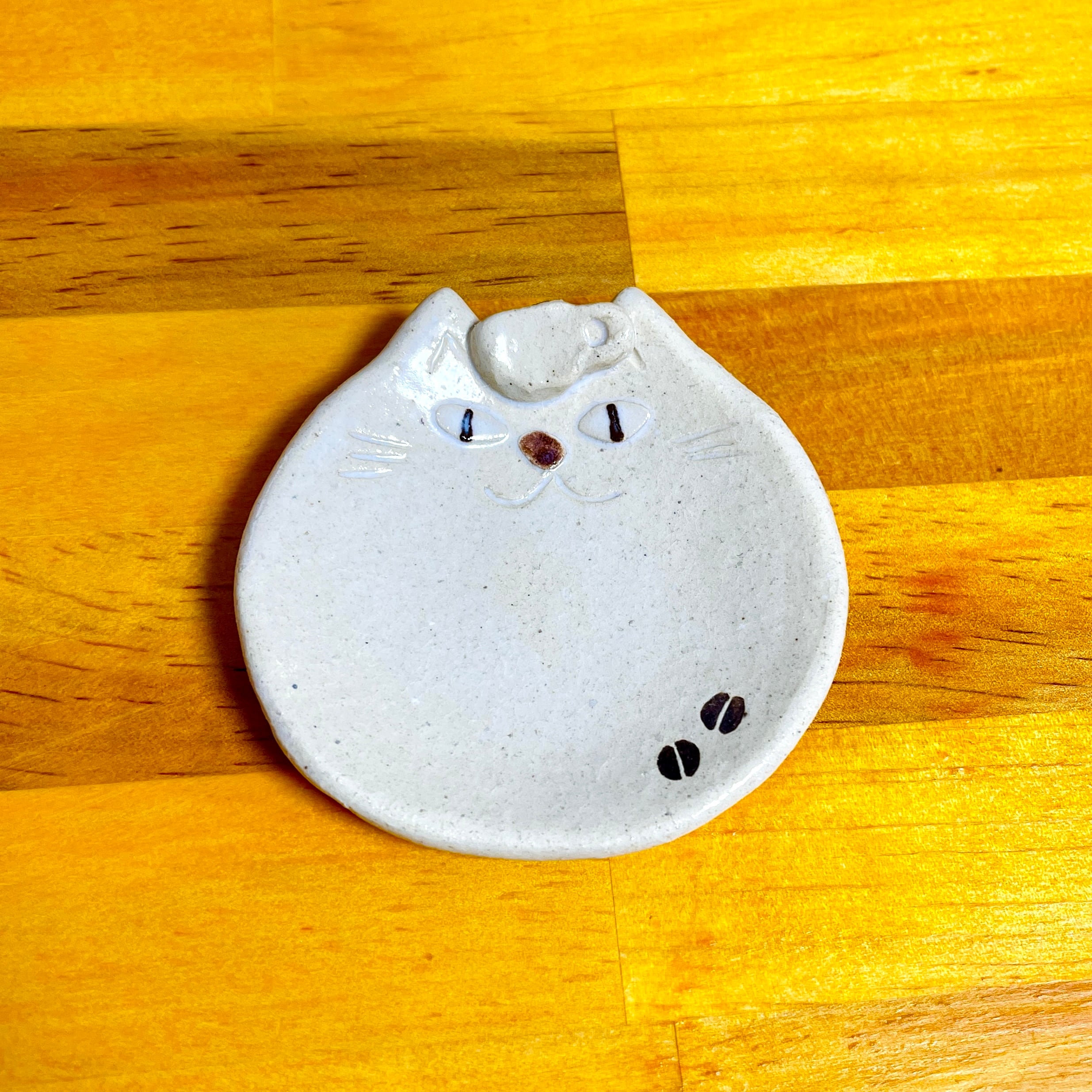 ちょこんと座った「コーヒー猫」の豆皿です。
